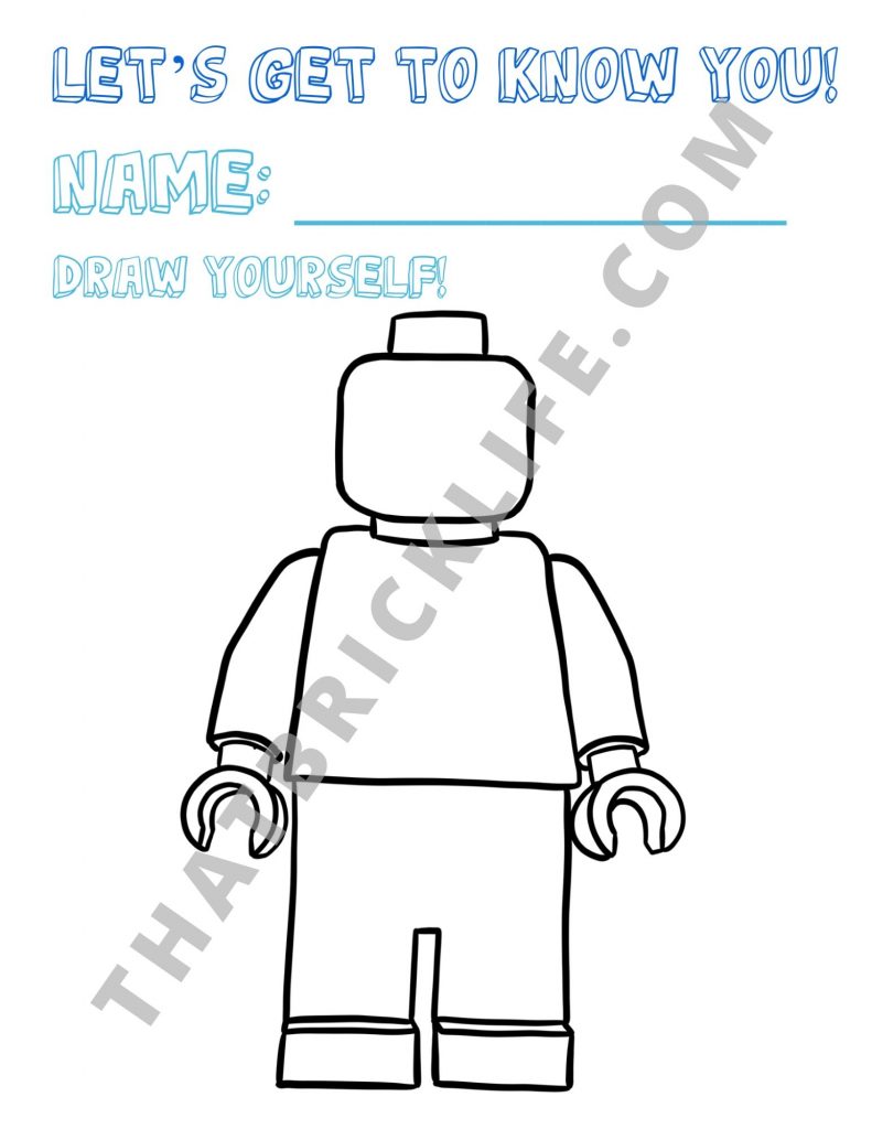 Your child will be able to draw themselves as a minifigure, build a house, create a shoe, and write some of their favorite activities down.